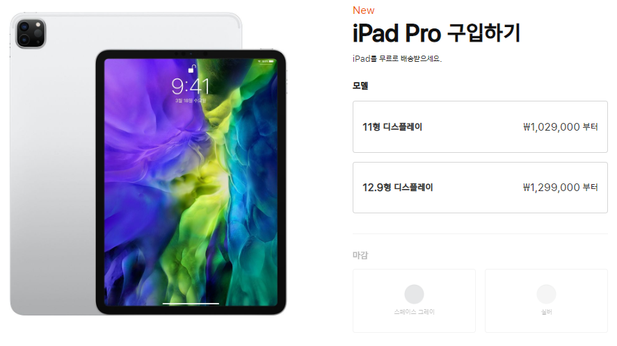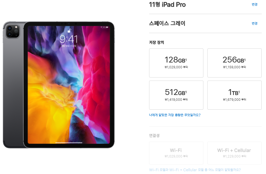 11인치 12.9인치 모두 시작은 128GB 부터 시작이다