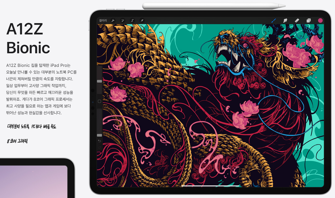 이번 아이패드 프로4세대엔 A12Z Bionic 칩이 적용되었다.