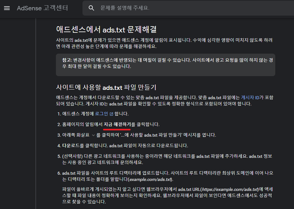 ads.txt 관련 "지금 해결하기" 알림창이 나와야한다는데????