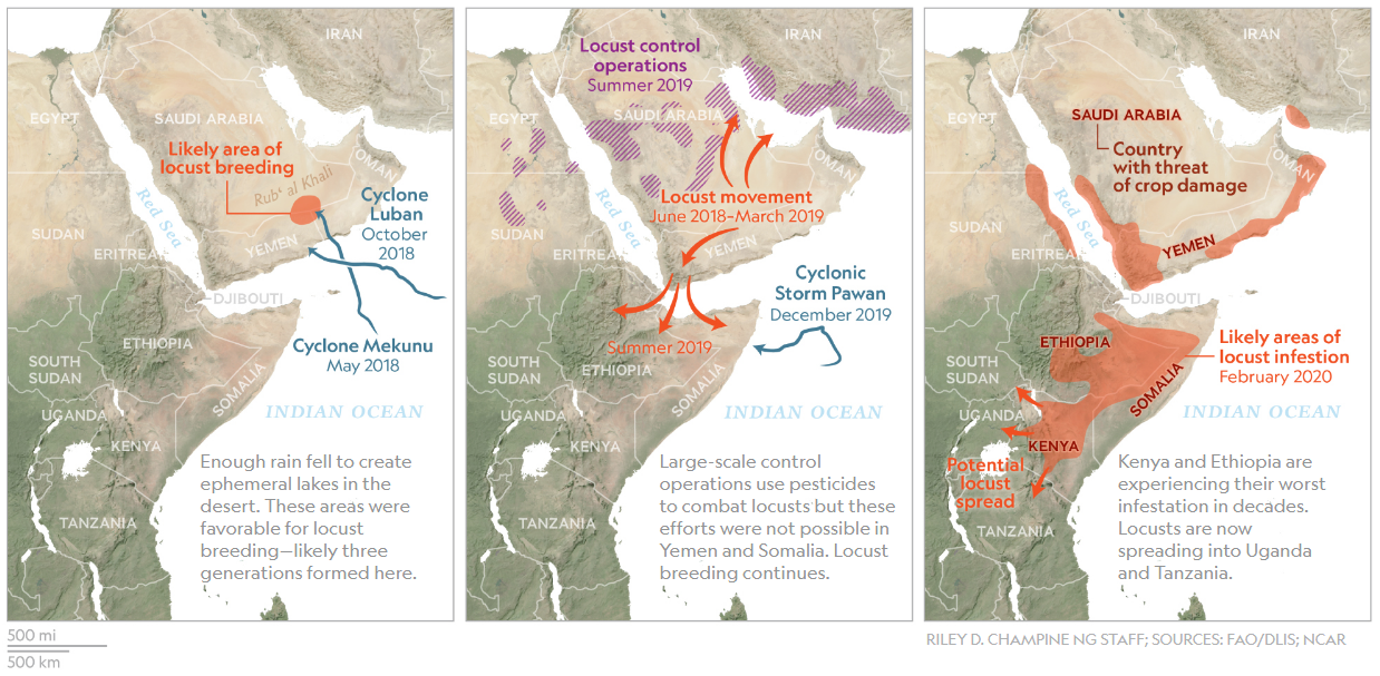 지금 사막 메뚜기가 신종코로나, 우한폐렴에 이은 또 다른 막강한 전염병 수준으로