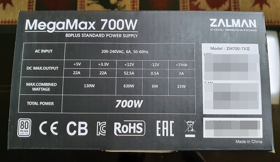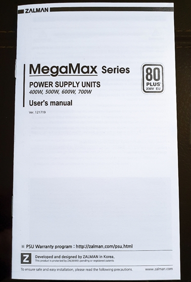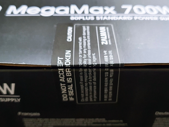 씰까지 잘 붙어있는 잘만 MegaMax 700W 80Plus Standard