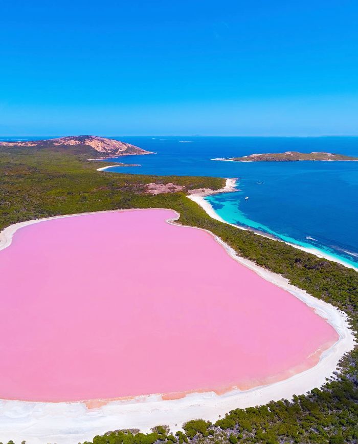 바로 옆 푸른 바다와 핑크빛 호수의 대비는