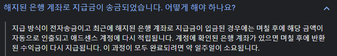 5. 구글 애드센스 수익금이 해지된 은행 계좌로 입금되었습니다.