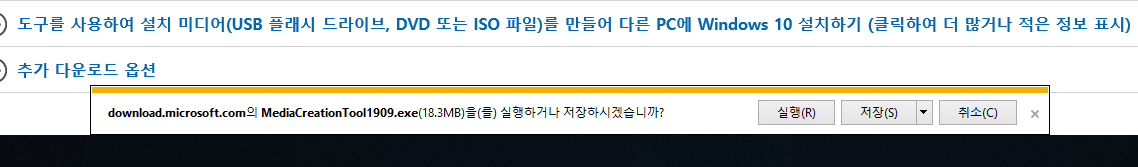 마이크로소프트에서 MediaCreationTool1909 라는 exe파일을 제공한다는데