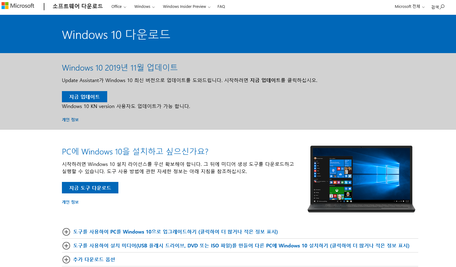 하지만 이젠 마이크로소프트에서 그냥 윈도우10 설치파일을 뿌린다.