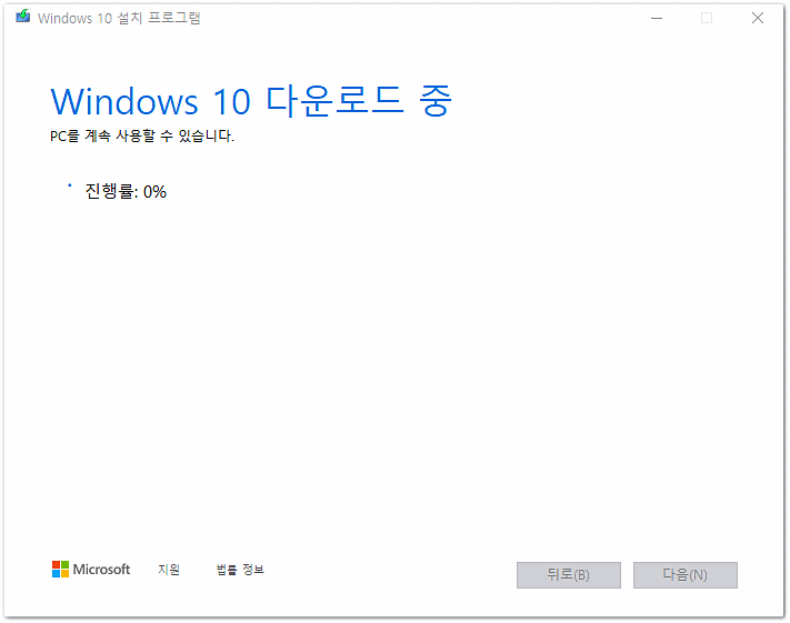 마이크로소프트 서버에서 윈도우10 설치파일을 받아서
