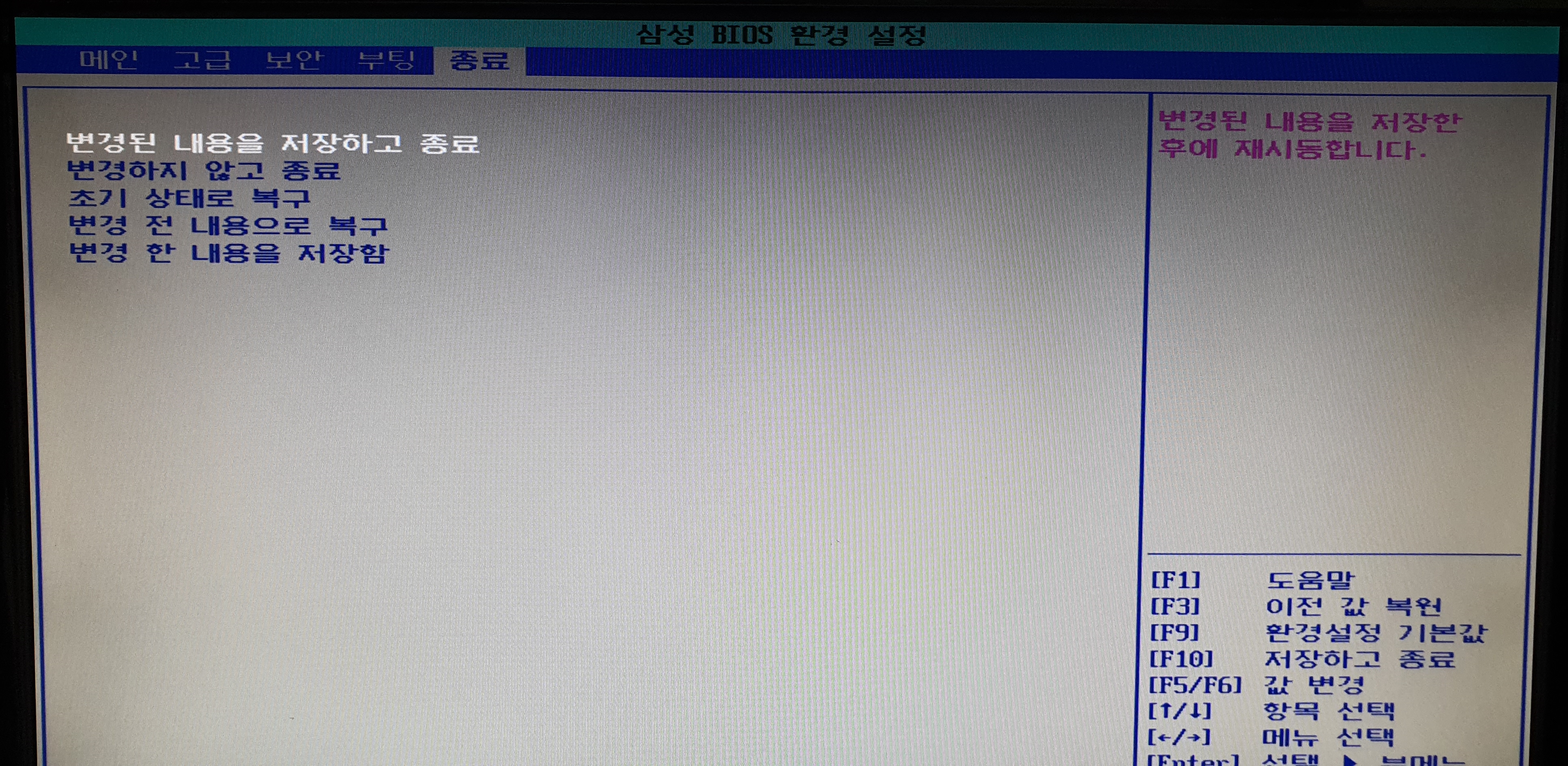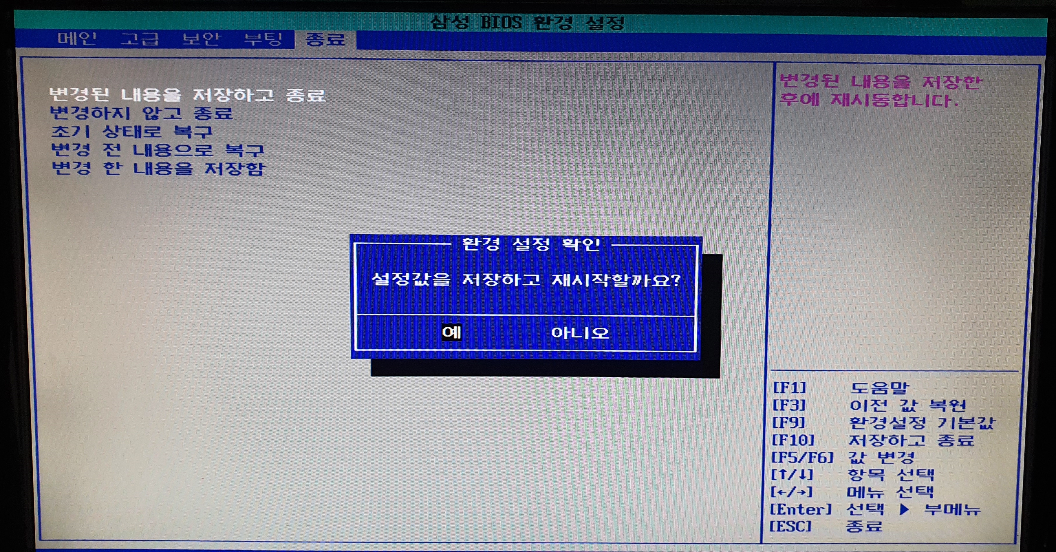 Exit메뉴로 이동해서 저장 후 종료를 눌러준다.