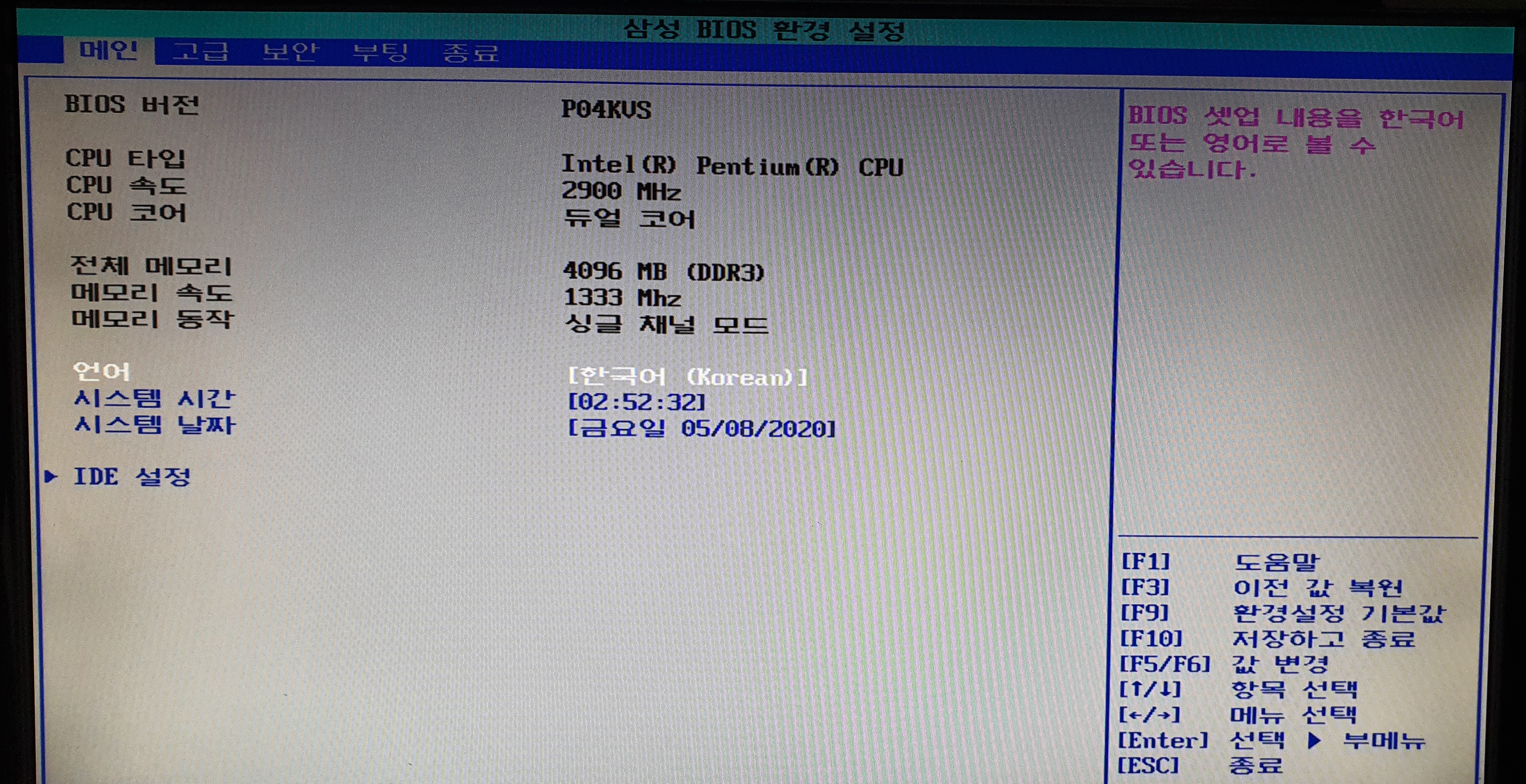 전원올리자마자 나오는 화면 하단을 보면 Bios Setup = 무슨 버튼처럼