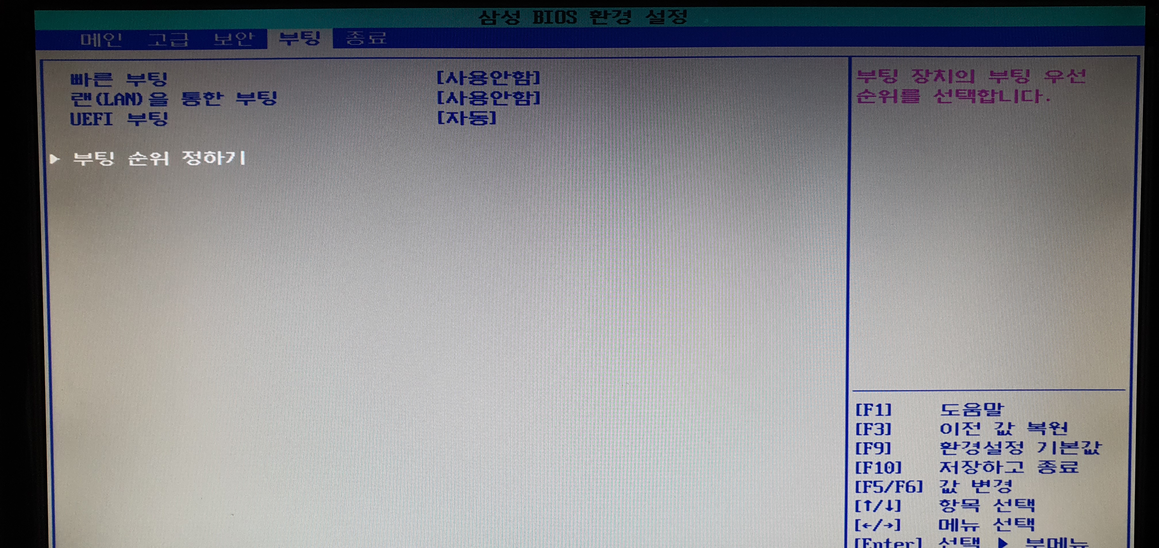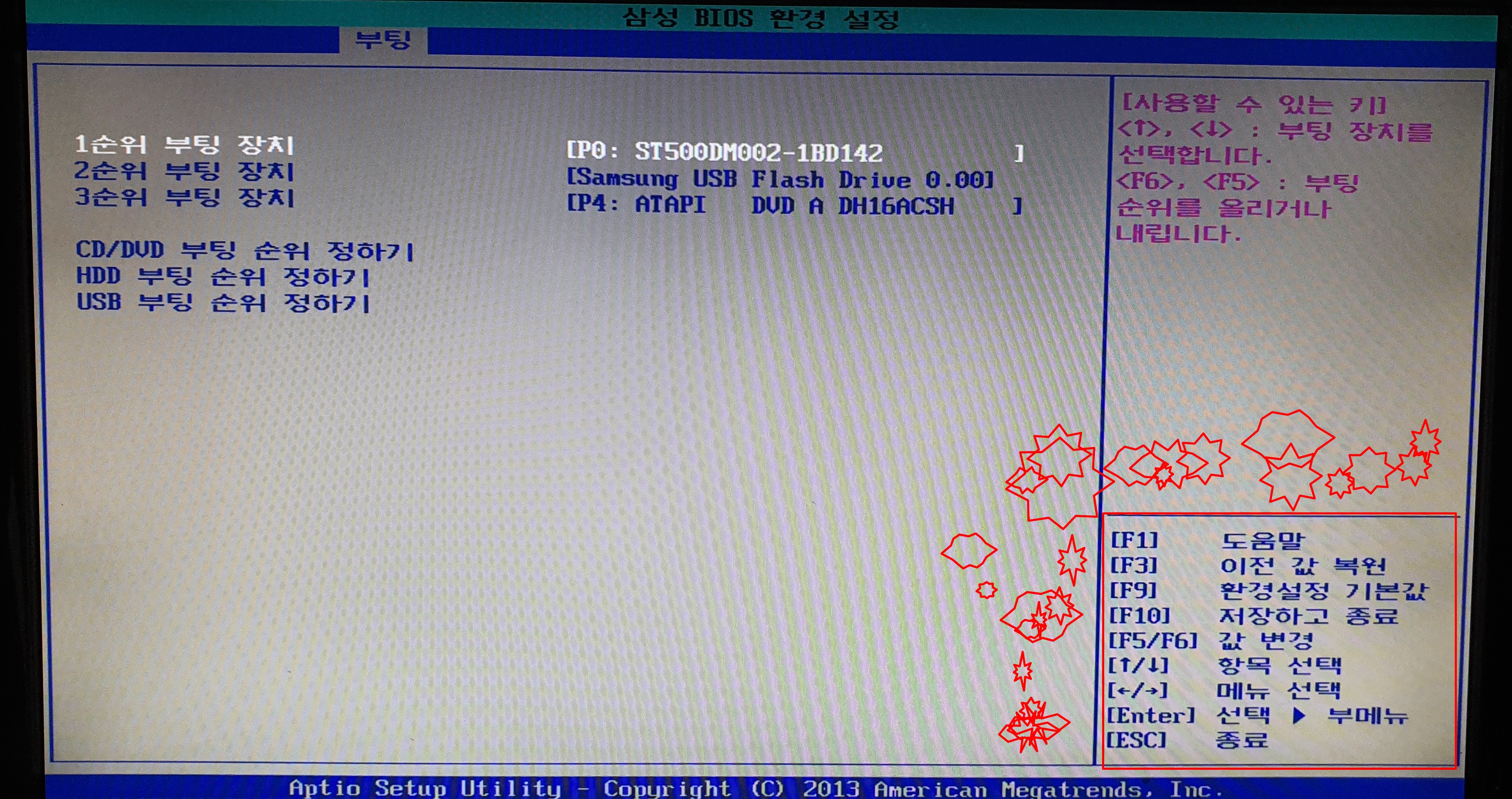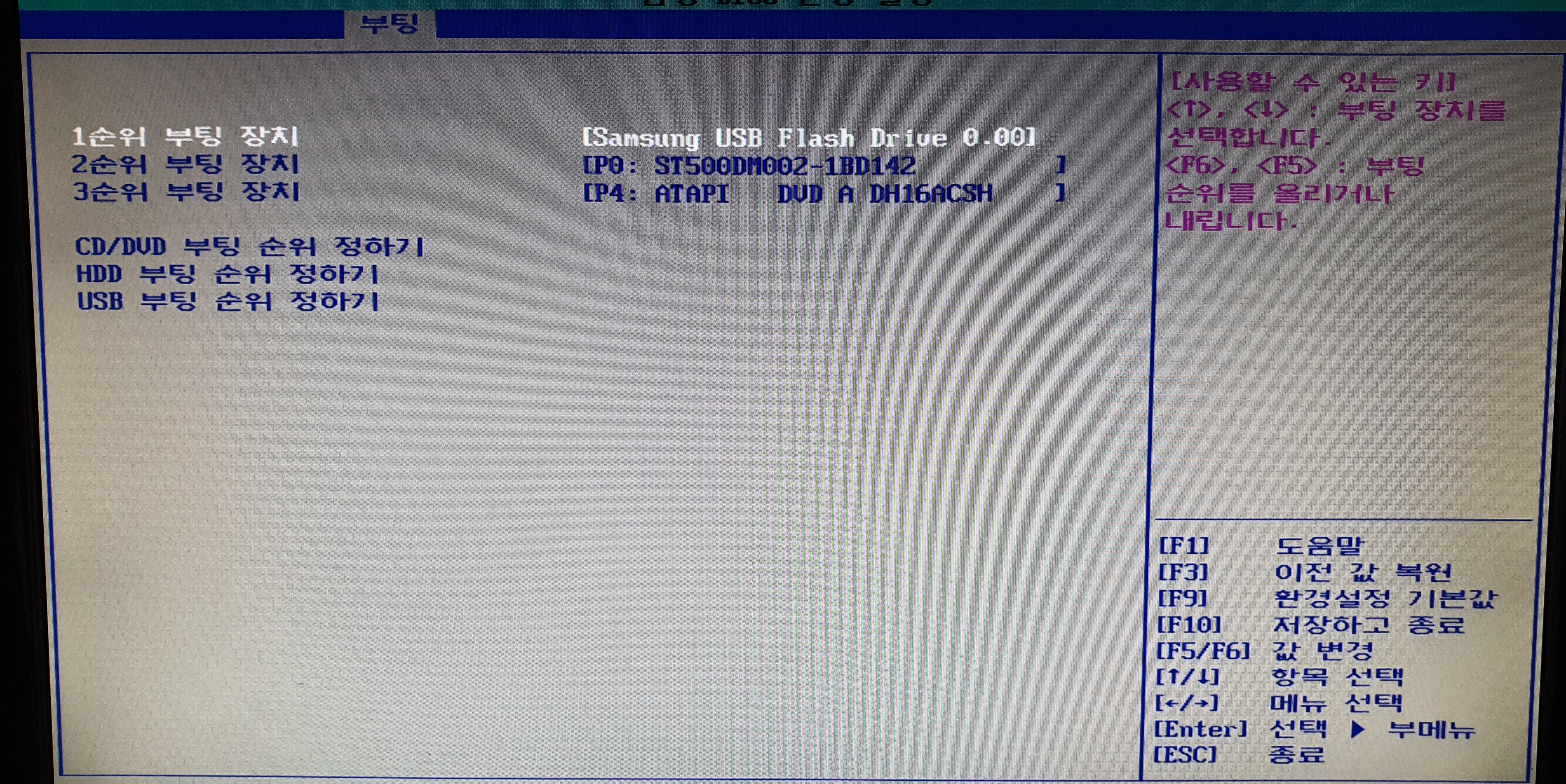 부팅 순위 정하는곳으로 들어가야한단 뜻이다.