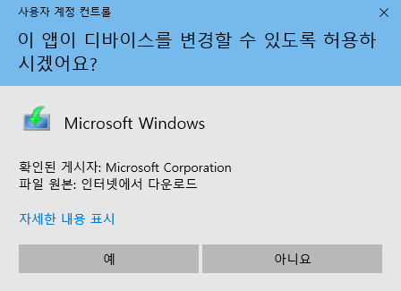 당연히 "예" 를 눌러준다.