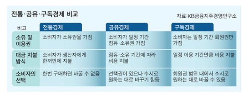 자동차, 가구, 영상 스트리밍 등 우리 삶 전반에 확장되어 구독경제 구조를 띄게 되었다.