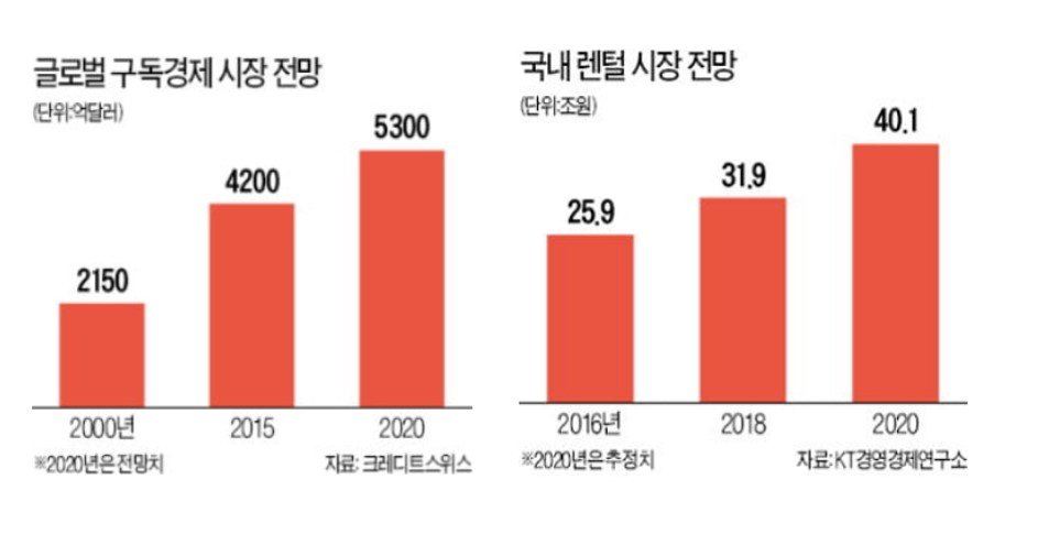 글로벌 구독경제 시장규모는 엄청난 수준으로 19년 전망보다 배로 성장할 것이다.