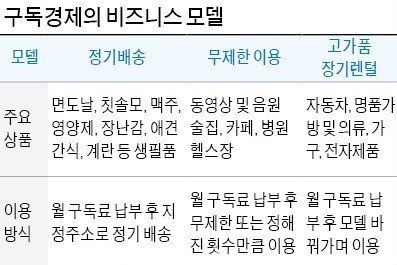 기업에 회원가입 후 매달 일정금액을 지불함으로 물품이나 서비스를 제공받는 경제구조이다.