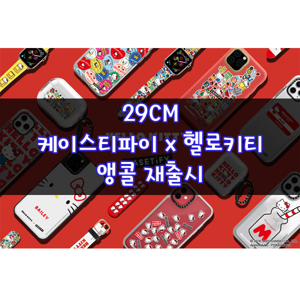 케이스티파이(casetify)와 헬로키티의 콜라보 한정 폰케이스 4종(오가닉 밀크, 미니마트 리시트, 프로듀스 스티커, 마켓플레이스)와 그립 스탠드1종이 6월 19일부터 20일 오후5시까지 29cm 블랙딜을 통해 재출시된다. 일전에 케이스티파이(casetify)와 헬로키티 콜라보로 출시되었던 폰케이스, 에어팟 케이스, 애플워치 스트랩 등 다양한 액세서리가 출시 7일만에 전량 완판되며 앵콜로 인기 좋았던 제품들 대상으로 재출시를 한다.