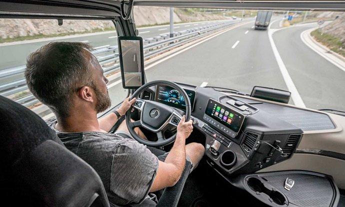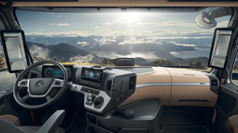 사이드 미러가 없는 차세대 벤츠 트럭 디자인.