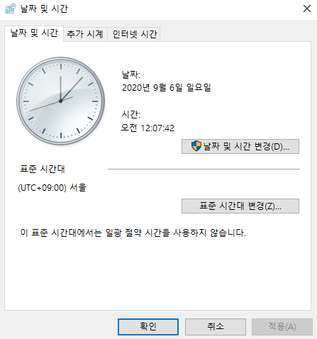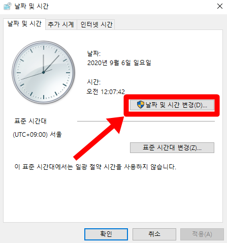 "날짜 및 시간 변경(D)...." 을 클릭해준다.