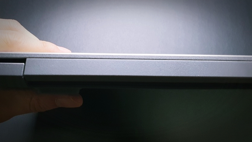 아이디어패드 Slim3 -14IML 상판에 어떤 유격은 보이지 않는다.