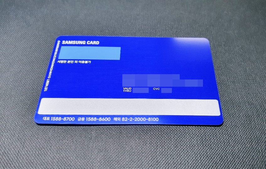 요즘 카드 트렌드에 맞게 카드번호나 CVC, 유효기간 등은 뒷면에 모두 기재되어 있습니다.