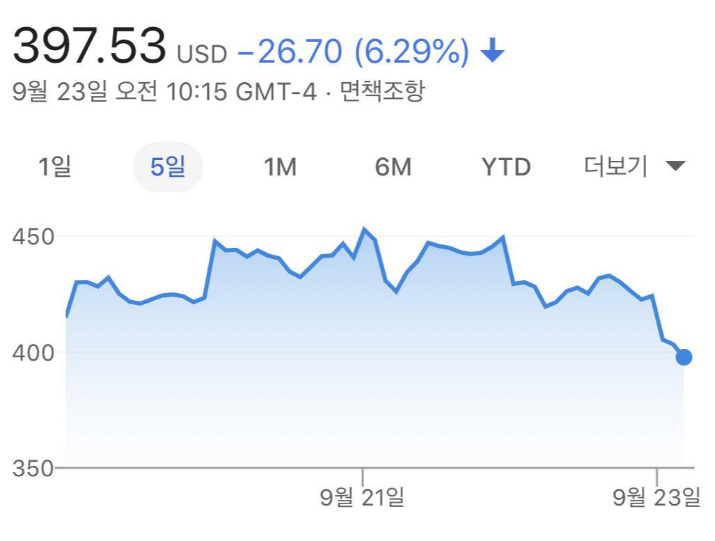 테슬라 주식, 주가 또한 테슬라 배터리데이 이후로 떨어지고 있다.