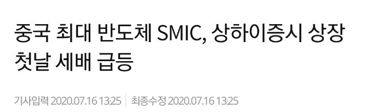 SMIC는 화웨이 제재에 적극 동참하겠다고 밝혔었다.
