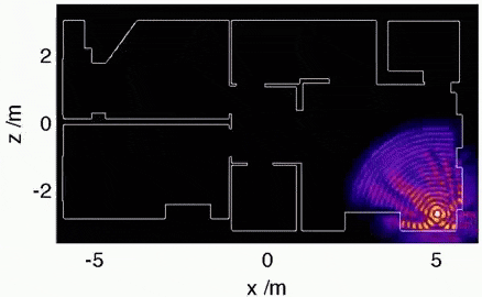 벽을 지나게 되면 급격하게 세기가 줄어듭니다.