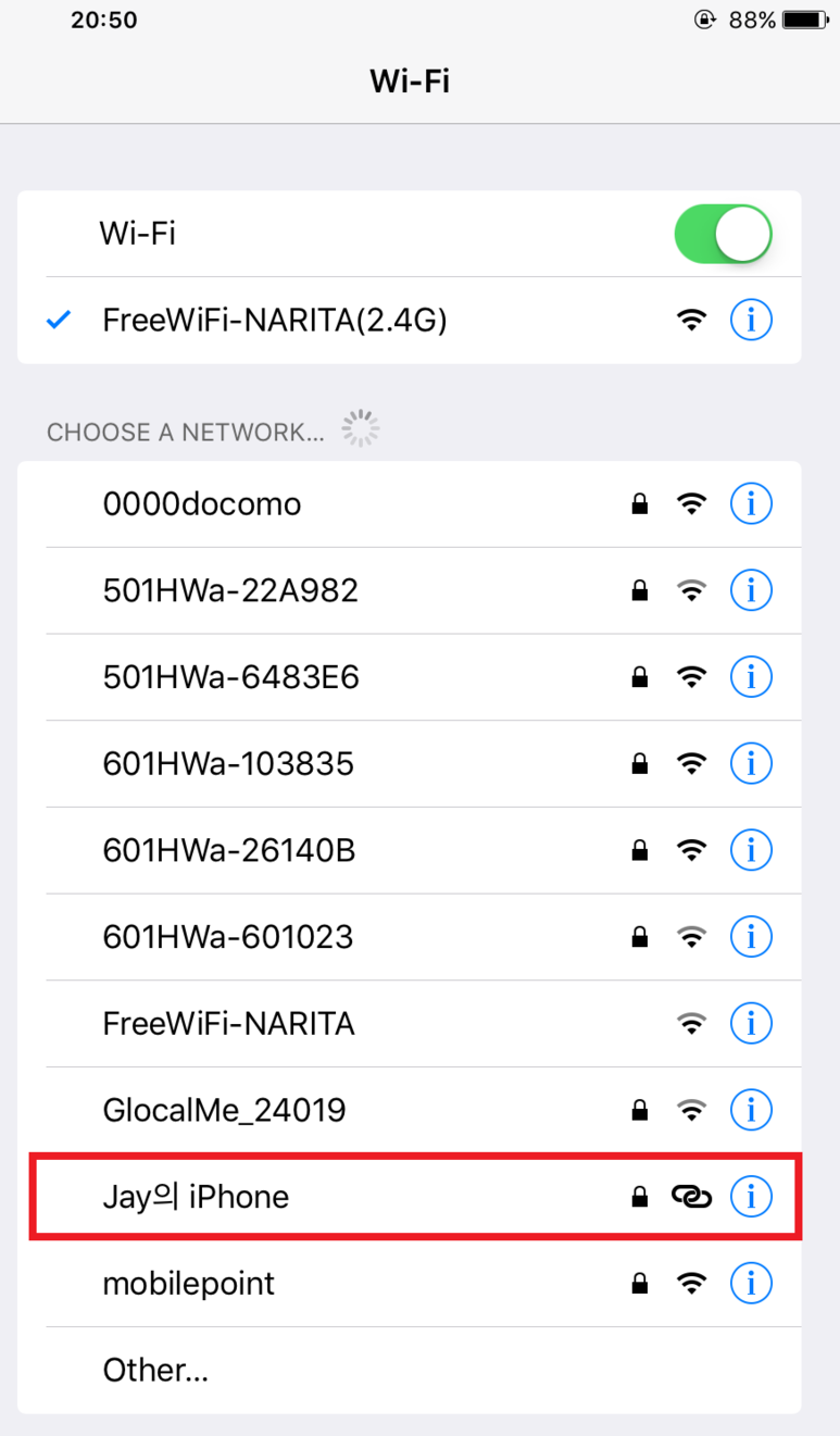 7. WiFi를 연결할 수 있는 기기를 연결해봅니다.