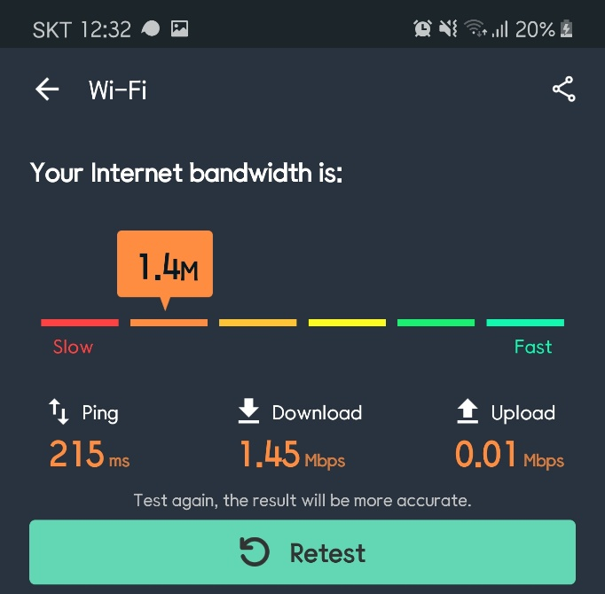 공유기에서 받고 있는 신호가 충분히 세지 않다라는 뜻으로