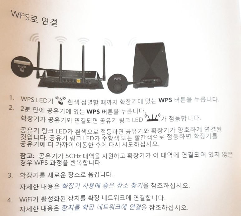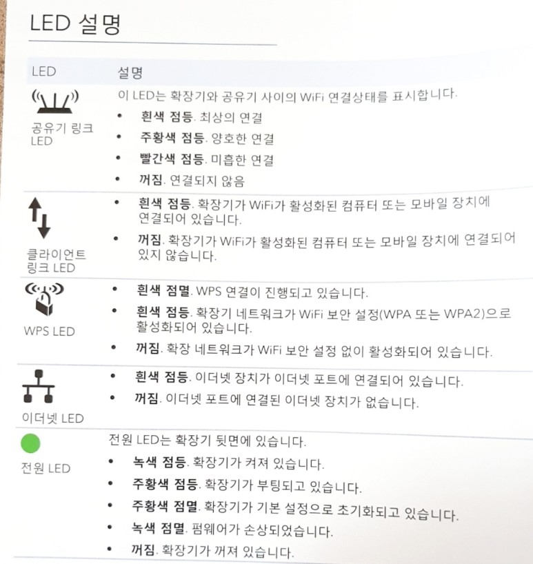 1. 공유기 바로 옆에서 확장기 파워를 넣고 부팅완료 후