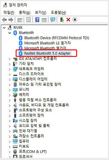 "Realtek Bluetooth 5.0 Adaper" 이라고 변경됩니다.