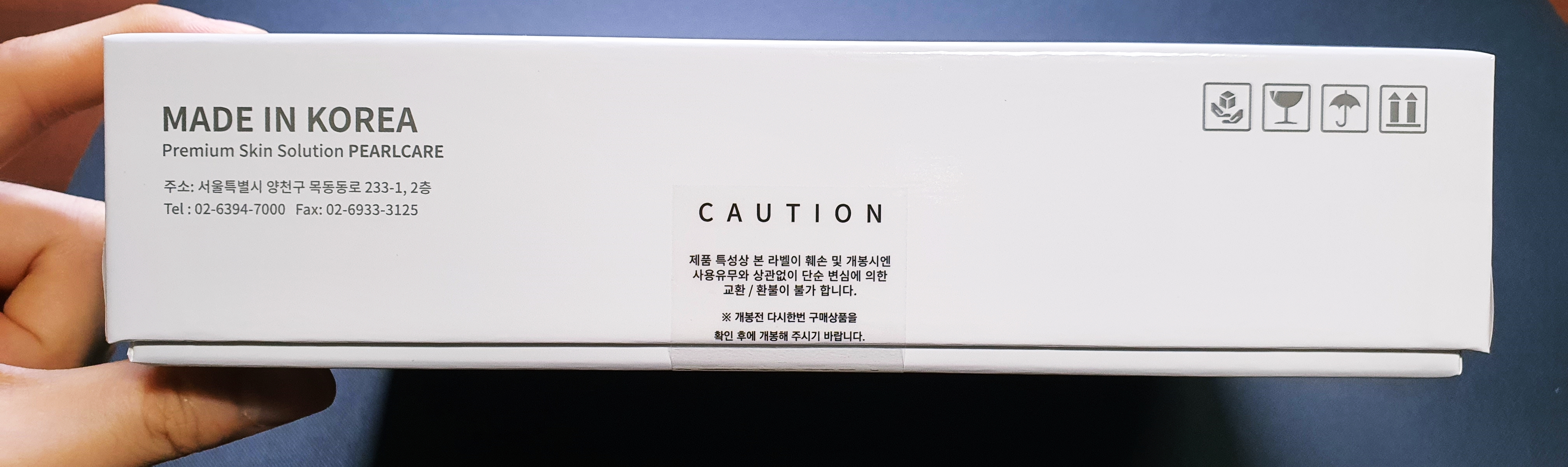 펄케어 갈바닉 마사지기엔 봉인씰이 야무지게 붙어있다.