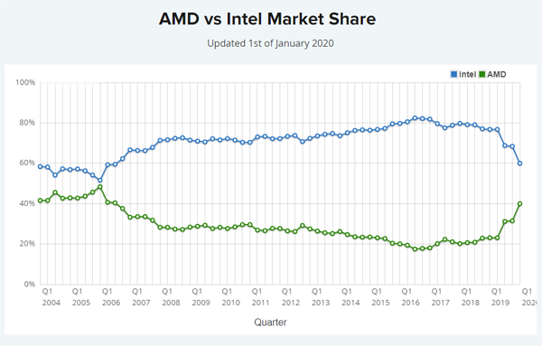 AMD가 점유율을 대폭 따라잡았고