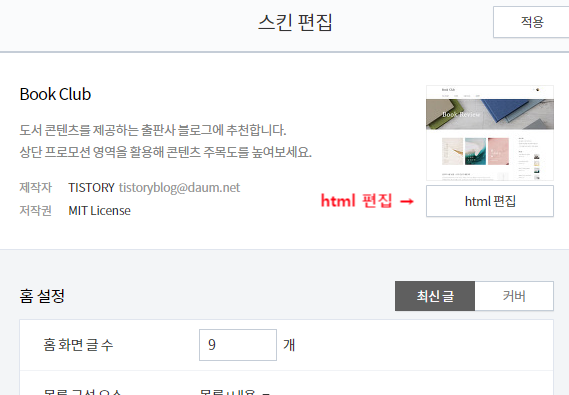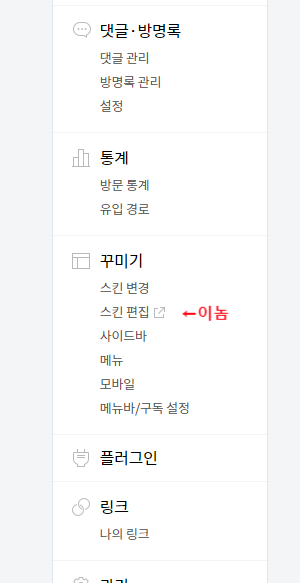 티스토리 - 관리 - 좌측 메뉴들 중에 ' 스킨 편집 '
