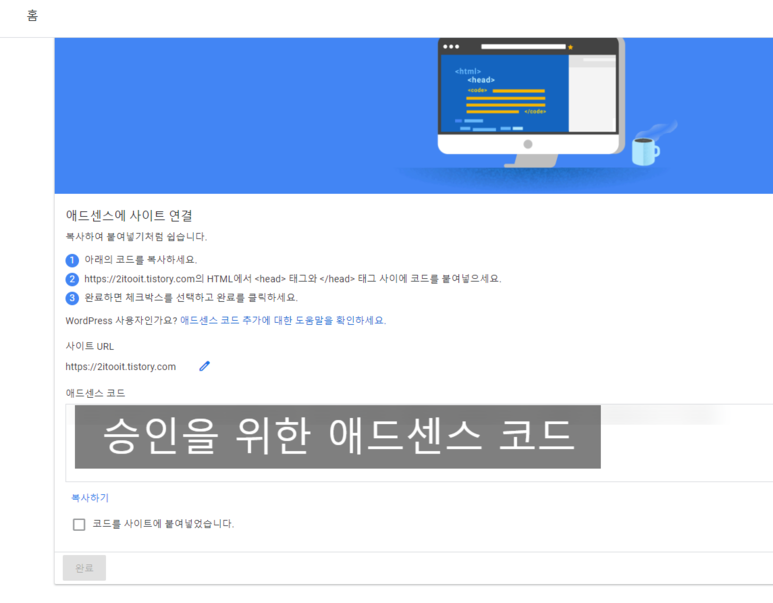 (전 아직 방문자가 많이 적고 포스팅글도 적어서...ㅠㅠ 승인이 안나옵니다)