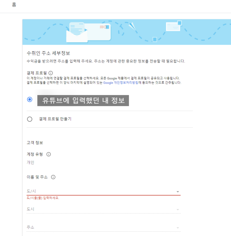 유튜브 프리미엄, 레드 등을 결제했다면 그때 입력했던 정보가 나올겁니다.
