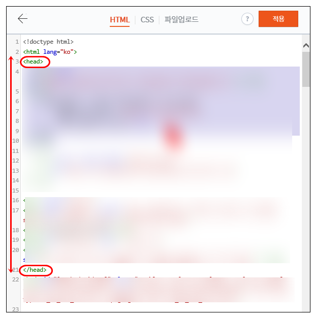 <head>와 </head> 태그 사이에 코드를 넣어주는거죠
