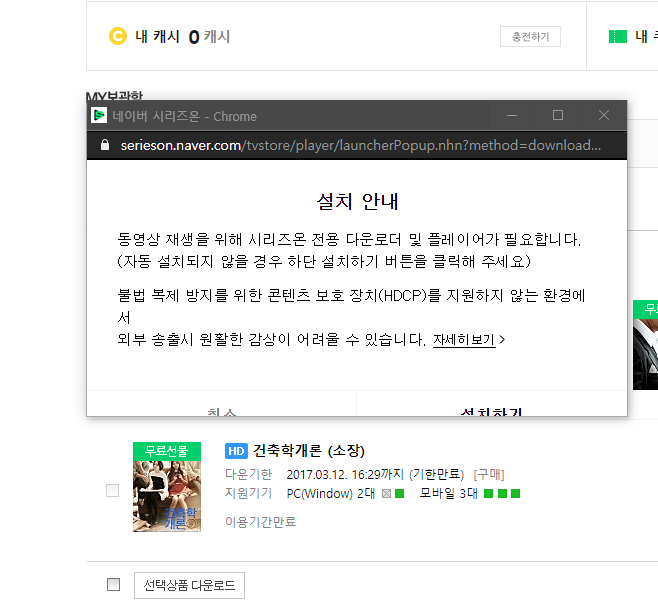 네이버 시리즈온 영화 다운로드를 이렇게 실행했을 것이다.