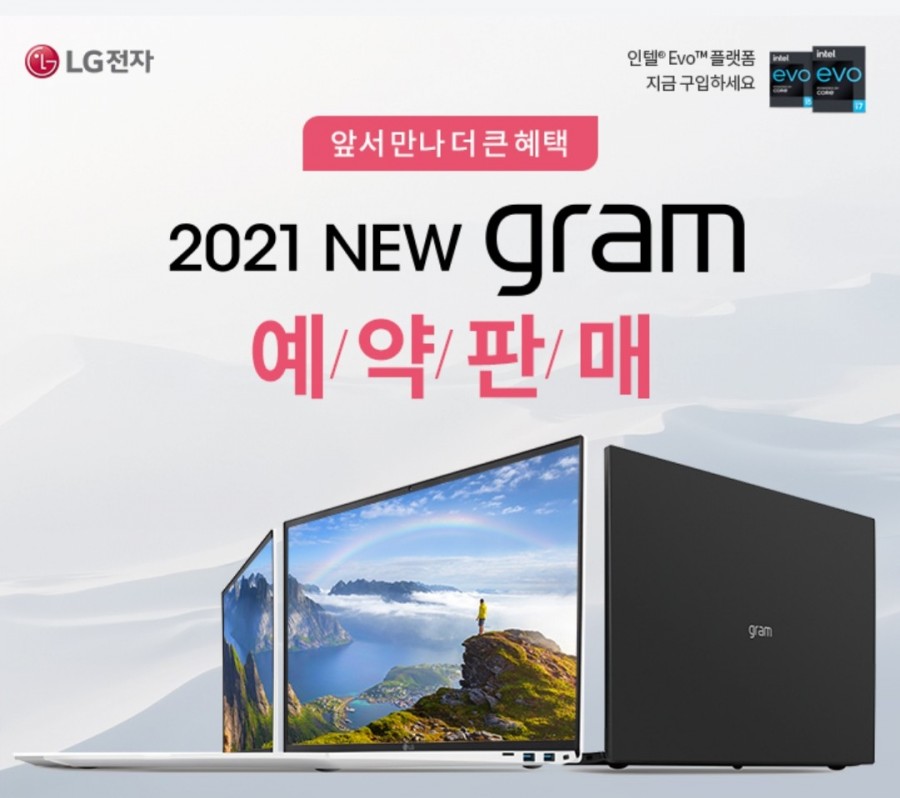 현재 LG전자는 여러 몰을 통해 LG 그램 2021 사전예약을 받고 있다.