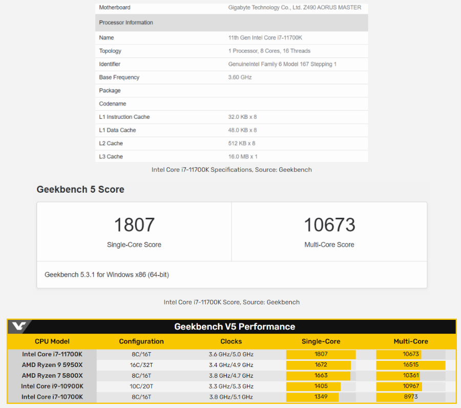 Intel Core i7-11700K beats Ryzen 9 5950X by 8% in Geekbench 5 single-core benchmark - VideoCardz.com