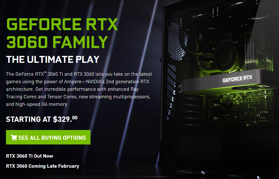 엔비디아 RTX3060 가격은 329달러로 책정되었으며