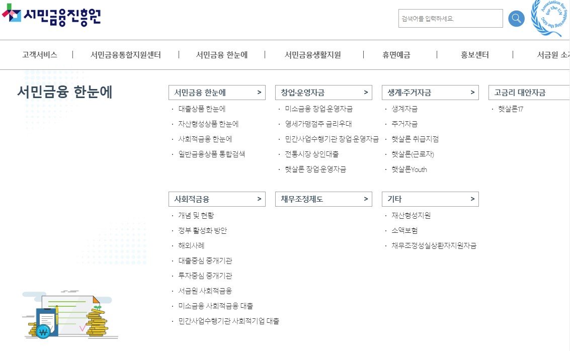 서민금융진흥원 홈페이지