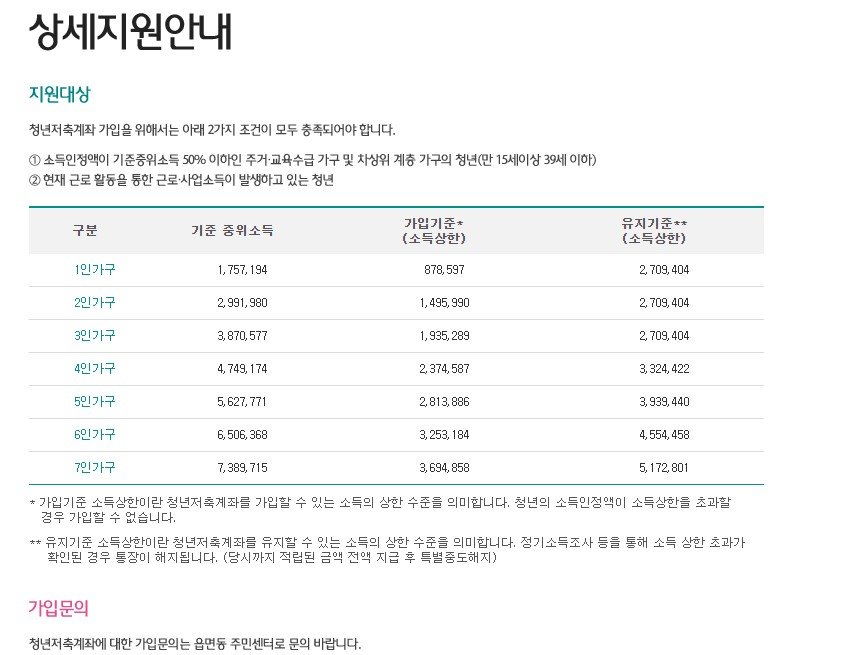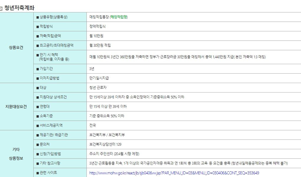 단, 청년 계좌 신청할 때 소득이 월 평균 87만원을 넘으면 청년저축계좌 개설이 안된다.