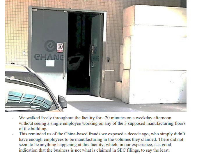 이런 상황에서 애널리스트 울프팩 리서치가 불시에 중국내 이항 홀딩스 드론공장을 탐사하고