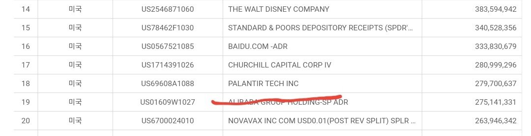 한국인이 들고 있는 주식수가 나옴으로 확인해보면