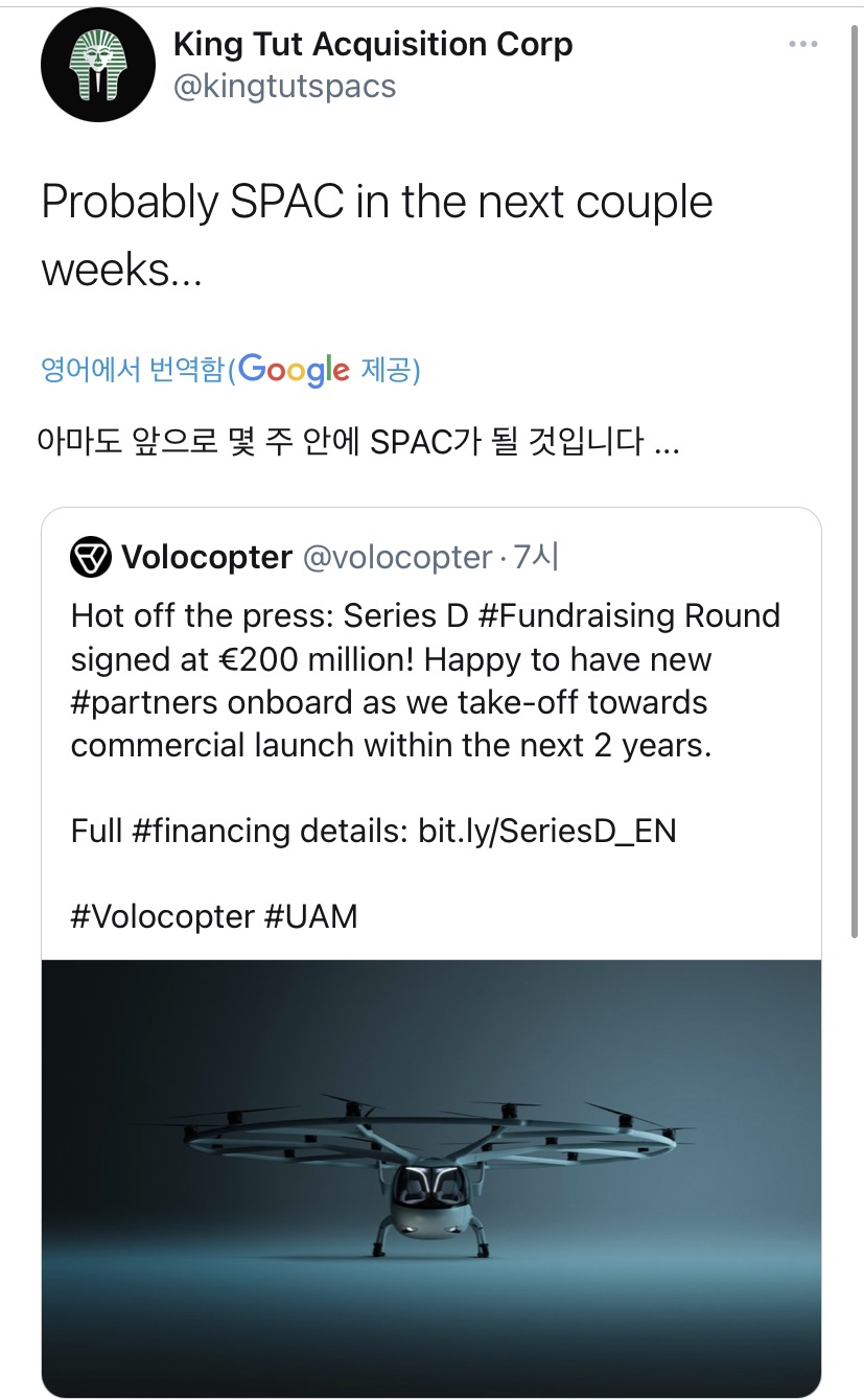 볼로콥터가 스팩 컨택할 거라고 한다.