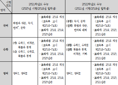 우선 이 글은 한국교육과정평가원에서 공개한 2022 수능 시행령과