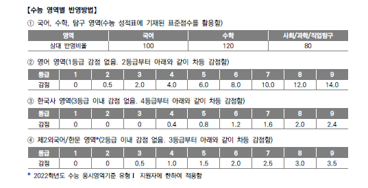 위 조건까지 맞추면 결국 국어와 수학, 사회탐구나 과학탐구 점수싸움에서 판가름이 나게됩니다.