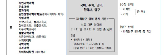 참고로 서울대학교의 경우 문과는 과학탐구를 선택해도 지원이 가능합니다.