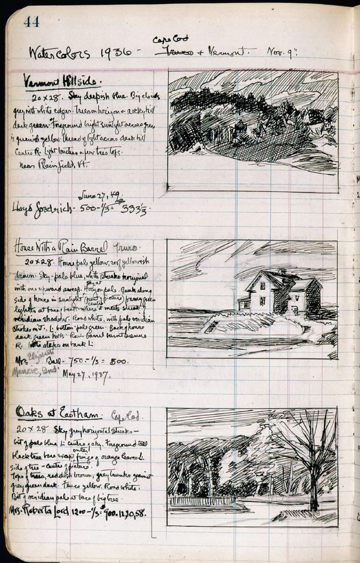 또 그의 부인은 호퍼의 스케치에 작품의 제목, 완성된 날짜, 간략한 작품설명, 판매가, 구매자 등의 주석을 상세하게 달았다.