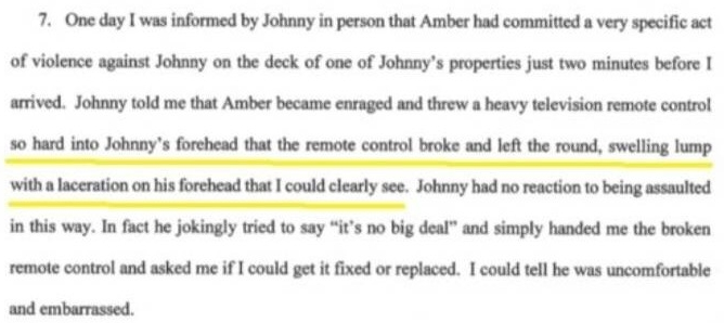 "엠버 허드는 노 메이크업 상태였는데, 얼굴이나 신체에 전혀 상처 같은건 보이지 않았다. "