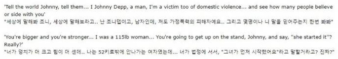 | 조니 뎁 반전 녹취록, 명예회복? 현재까지의 조니뎁, 아쿠아맨 메라 엠버 허드와의 이혼, 소송 등 전체적인 내용 (0) | 2020.02.07 |
